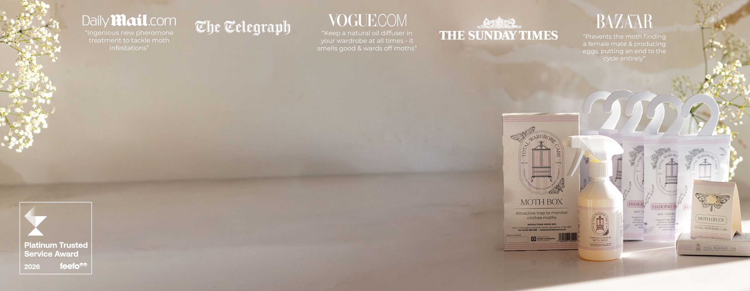 We have put together a few pages of hints and advice on deterring moths from your home, the storage of clothes and also some links that you might find helpful. If you have any hints or ideas of your own, do let us know at info@totalwardrobecare.co.uk